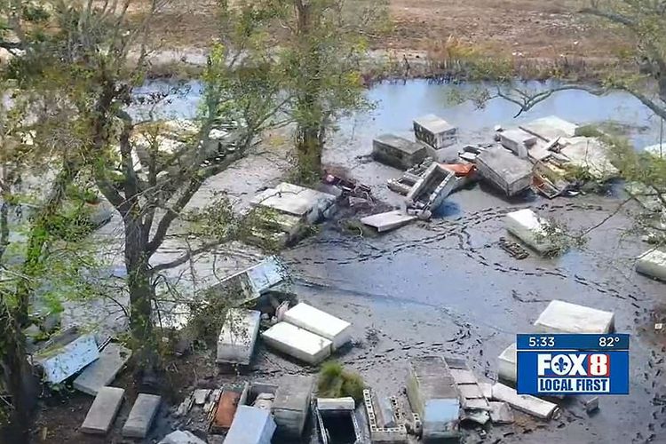 Tetapi ketika air banjir dari Badai Ida menyapu wilayah itu pada akhir Agustus, banyak peti mati tersapu keluar dari brankas, dan masih berserakan di sekitar kota.